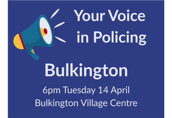 There is still time to send in your questions ahead of our next Your Voice In Policing event in Bulkington. On Tuesday 14 April, residents will hear PCC Philip Seccombe holding the force to account and putting questions sent in from the public directly to Deputy Chief Constable David Gardner and local Chief Inspector Karl Faulkner in a Question Time-style event. Save the date📍 Bulkington Village Centre, School Road CV12 9JB 📅 Tuesday 14 April 2026 🕕 6:00 PM – 7:30 PM This event is designed to give communities the opportunity to engage directly with policing teams and partner agencies, raise concerns, ask questions, and learn more about what is being doing to keep them safe. Send in your questionsWhat are your concerns and issues with policing in the local area? Whether it's anti-social behaviour, retail crime, burglary, vehicle crime or anything else, we want to hear from you. Send your questions in via our online form, or by emailing opcc@warwickshire.police.uk with the subject line ‘Your Voice In Policing’. Whether you have concerns, ideas, or simply want to learn more about what’s happening in your local area, your voice matters.