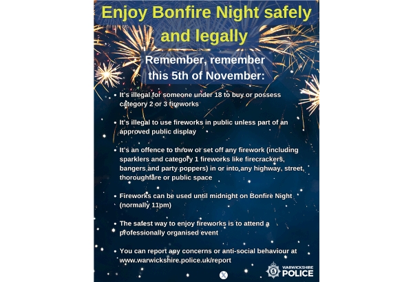 As we approach Bonfire Night, we want to remind everyone to celebrate responsibly and with care for others in our community.