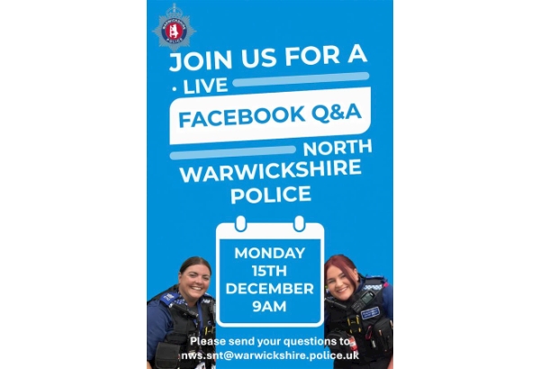 Join Us Live! The Atherstone and Coleshill Safer Neighbourhood Team will be hosting a Facebook Live Q&A on Monday, 15th December.