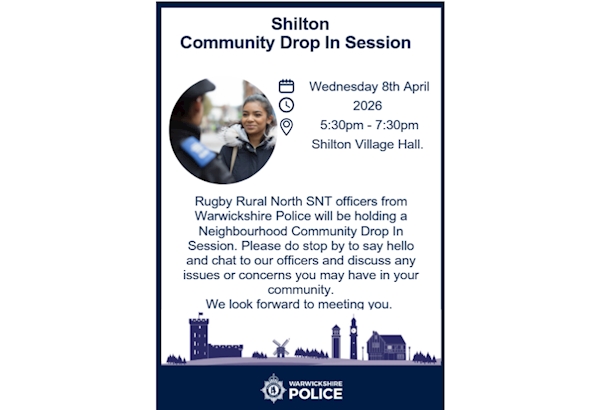Shilton Village Hall drop in : Wed 08 Apr 17:30 |